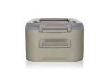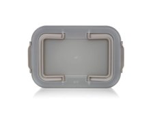 Plastové dózy Piknik s transparentním víkem. Sklápěcí ucha. 2 patra. Dózy jsou k sobě upevněny klipy. Plastová vyjímatelná mřížka pod potraviny. Rozměry: 40 x 28 x 17,8 cm. Barva: transparentní víko/latte dózy.