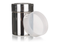 Nerezová posypová cukřenka AKCENT s plastovým víčkem. Jemné sítko. Rozměry: 7 x 9,5 cm. Barva: stříbrná/transparentní víčko.
