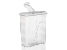 Plastová dávkovací dóza CULINARIA. Vhodná pro ukládání sypkých potravin - těstovin, luštěnin, mouky, cukru. Dávkovací víko. Transparentní dóza. Měrná stupnice s odstupem 250 ml. Rozměry: 25,5 x 8,6 x 17,6 cm. Objem: 2,5l. Barva: transparentní/bílé víko.