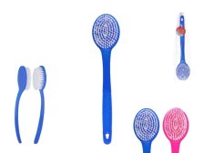 Koupelnový kartáč s plastovou rukojetí. Otvor na zavěšení. Rozměry: 34 x 4 x 7 cm. Mix barev.