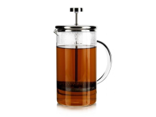 Skleněný kávovar s nerezovým filtračním pístem. Vhodný i pro sypaný čaj. Bambusové víčko. Korkový podstavec. Materiál nádobky: borosilikátové sklo (max.+180°C). Rozměry: 15,5 x 9 cm. Objem: 750 ml. Barva: čirá/natur. Nevhodný do MVT a myčky nádobí.