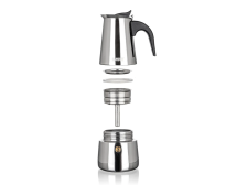 Tradiční kávovar pro domácí přípravu chutné silné kávy. Konvička má hliníkové tělo a bezpečnostní ventil. Plastové otevřené ucho. Využitelný objem 150 ml.