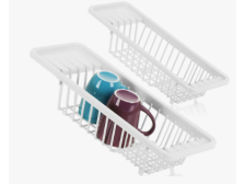 Plastový odkapávací koš na dřez LARA. Rozměry: 45,5 x 16,5 x 10 cm. Barva: bílá.