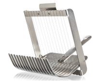 Nerezový kráječ na knedlíky strunový AKCENT. Opatřen podběrákem, který pomůže jednoduše a rychle vyndat uvařené knedlíky z horké vody. 14 strun. Rozměry: 21 x 30,5 cm. Barva: stříbrná.