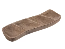 Dělená servírovací miska z mangového dřeva. Velmi tvrdé a odolné dřevo s dlouhou životností. Ideální pro servírování suchých plodů, sušeného ovoce a oříšků, nebo jako dekorace. 4 pozice. Rozměry: 20 x 7 cm. Barva: natur.