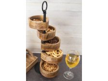 Dřevěný servírovací stojan s otočnými miskami z mangovníku. Velmi tvrdé a odolné dřevo s dlouhou životností. Kovová základna s úchytem. Ideální pro servírování, nebo jako dekorace. Rozměry: 12 x 45 cm. Průměr misky: 12 cm. Barva: natur/černý kov.