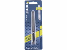 Nůž ulamovací celokovový Auto-lock Extol Craft. Určený pro břity 9 mm (tl.0,4 mm). Barva: stříbrná/černý plast. Obsahuje 1 ks ulamovacího břitu.
