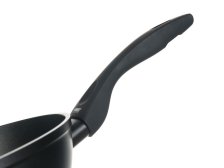 Masivní pánev Black Granitec. Odolný nepřilnavý povrch vyztužený keramickými částicemi. Akumulační sendvičové dno A-THERM INDUCTION. Široký odlévací okraj. Plastová rukojeť odolná až do +150°C. Bez poklice. Rozměry: 26 x 6,5cm. Objem: 2,7l. Barva: černá., Český výrobce: KOLIMAX.