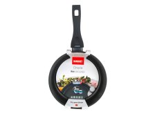 Masivní pánev Kitchissimo z litého hliníku. Nepřilnavý odolný povrch. Ergonomická plastová rukojeť. Rozměry: 28 x 6 cm. Barva: černá. Vhodná na indukci.