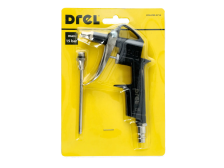 Pistole ofukovací DREL střední. Tlak: max. 15 bar. Velikost trysky: 2mm. Velikost rychlospojky: 1/4". Materiál: hliník. Délka trysky: 93 mm.