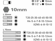 - hlavice zástrčné prodloužené: 10mm - T20-55mm/H4-12mm/XZN6-12mm