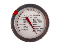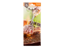 Vpichový nerezový teploměr na pečení/vaření masa. S potiskem symbolů nejčastěji používaných druhů masa, měří vnitřní teplotu pečeně. Délka jehly: 12,5 cm. Teplotní rozsah: +60°C až +87°C. Barva: stříbrná.