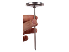 Potravinářský vpichovací teploměr. Kovový teploměr vhodný při úpravě masa a jiných potravin, pečením. Materiál: nerezová ocel. Rozměry: pr. 51 x 120 mm.