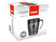 Dvoustěnný cestovní termohrnek TAZZA. Nerezové tělo. Plastové madlo a víčko s posuvným uzávěrem. Vhodný na teplé i studené nápoje. Rozměry: horní průměr: 9,3 cm/dno průměr: 7,5 cm/výška: 9,5 cm. Objem: 330 ml. Barva: metalická antracit.