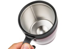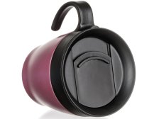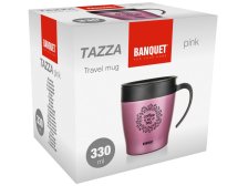Dvoustěnný cestovní termohrnek TAZZA. Nerezové tělo. Plastové madlo a víčko s posuvným uzávěrem. Vhodný na teplé i studené nápoje. Rozměry: horní průměr: 9,3 cm/dno průměr: 7,5 cm/výška: 9,5 cm. Objem: 330 ml. Barva: metalická růžová.