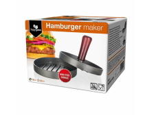 Forma na výrobu hamburgerů z mletého masa vyrobená z litého hliníku s nepřilnavým povrchem. Dřevěné madlo. Průměr: 12 cm/výška: 8 cm. Barva: stříbrná/natur madlo.