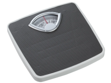 Váha osobní mechanická s nosností 120 kg. Materiál: plast. Seřízení váhy pomocí kolečka umístěného na základně váhy. Odchylka vážení 2 %. Rozměry: 28 x 28 x 5 cm. Barva: bílá.